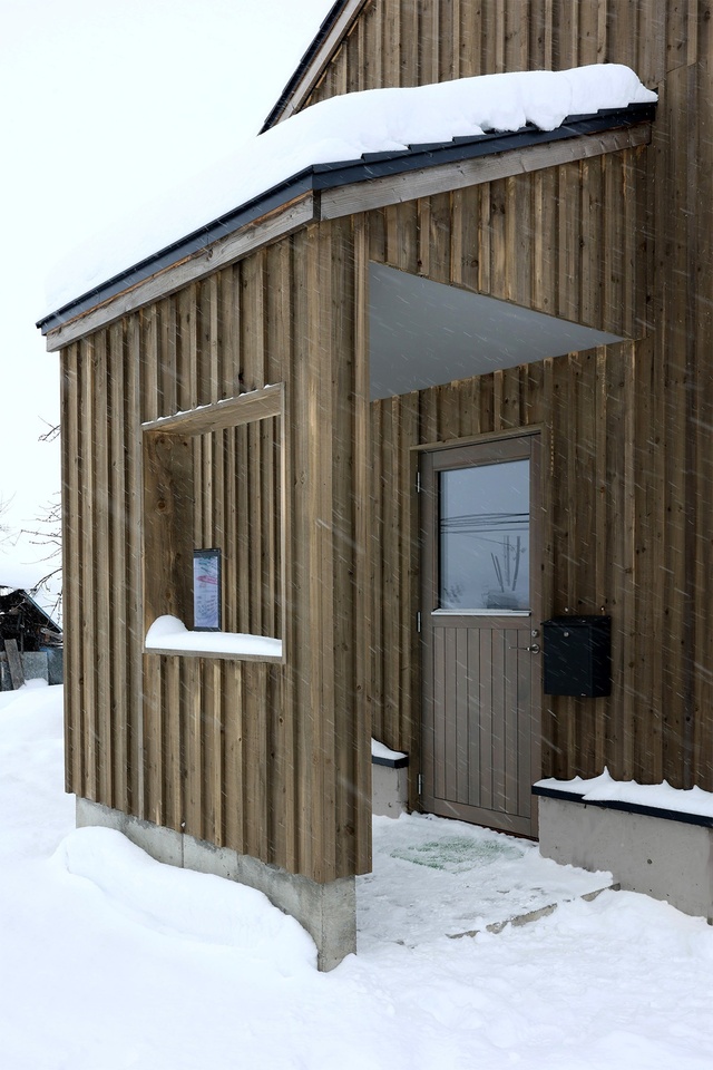 クリスマスイヴの日、萬田さんが東京から完成直後の新居を訪れると聞き、取材にお邪魔しました。外壁は全面、道産トドマツの板張り。北海道らしいモノクロームの世界によく似合います。