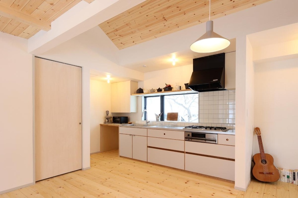 壁付けのキッチンは家具工房enaoの遠藤さんが造作。