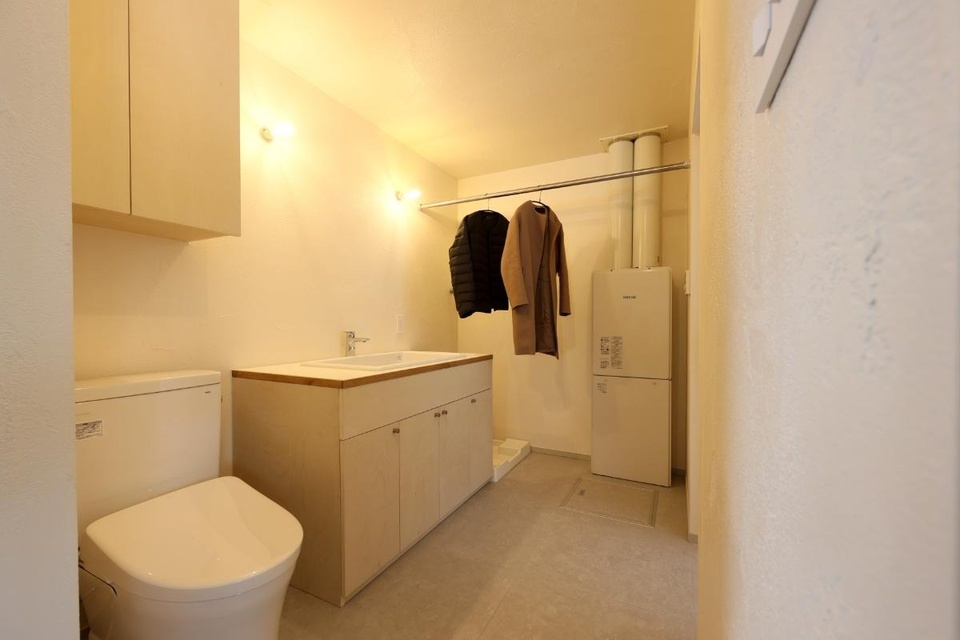省スペース化を図るため、ユーティリティーにトイレを併設しました。